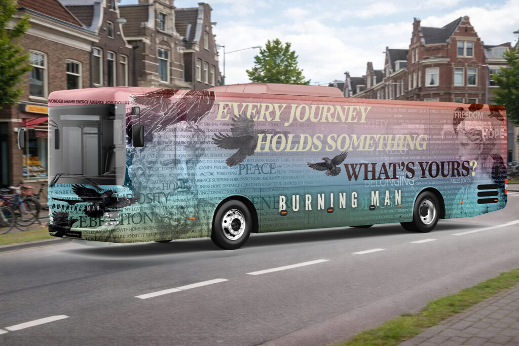 The bus is a perfect way to advertise the burning man Project throughout the county. The selection of areas are determined by the target group. Also the copy on the bus is adjusted to the bus itself. The bus is the very thing that is taking the journey. And it holds all the stories (people).