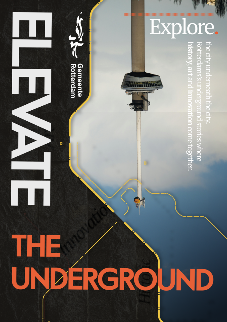 For this project, I developed a full city-campaign concept for Rotterdam titled “Elevate the Underground.” The campaign explores and celebrates the hidden layers beneath the city. Tts history, art, architecture, technical systems, and future innovations. and reframes Rotterdam’s underground as a living, dynamic part of the city’s identity.